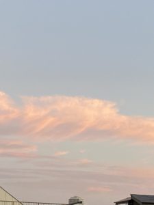 話変わって、昨日の事でございます。洗濯物を干していると、いつもより空がピンクなのに気が付きました(5時30分)