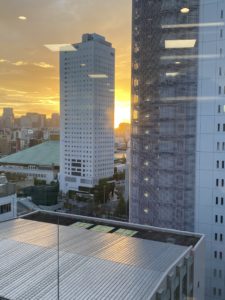 後片付けも終わり、帰り支度で窓の外を見るとキラキラした夕空(*^_^*)