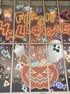 事務所近くの大型スーパー(複合商業施設)でも、いたる所がハロウィンバージョンになっていて