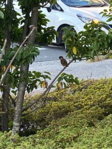 見回してみると、すぐ近くの木にたくさんのスズメが枝から枝に飛び交っておりました!(^^)!