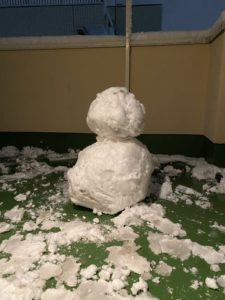 屋上で大きな雪だるまを作ろうと思っていたら、午後から晴れて溶けてしまってショック(ToT)/~~~